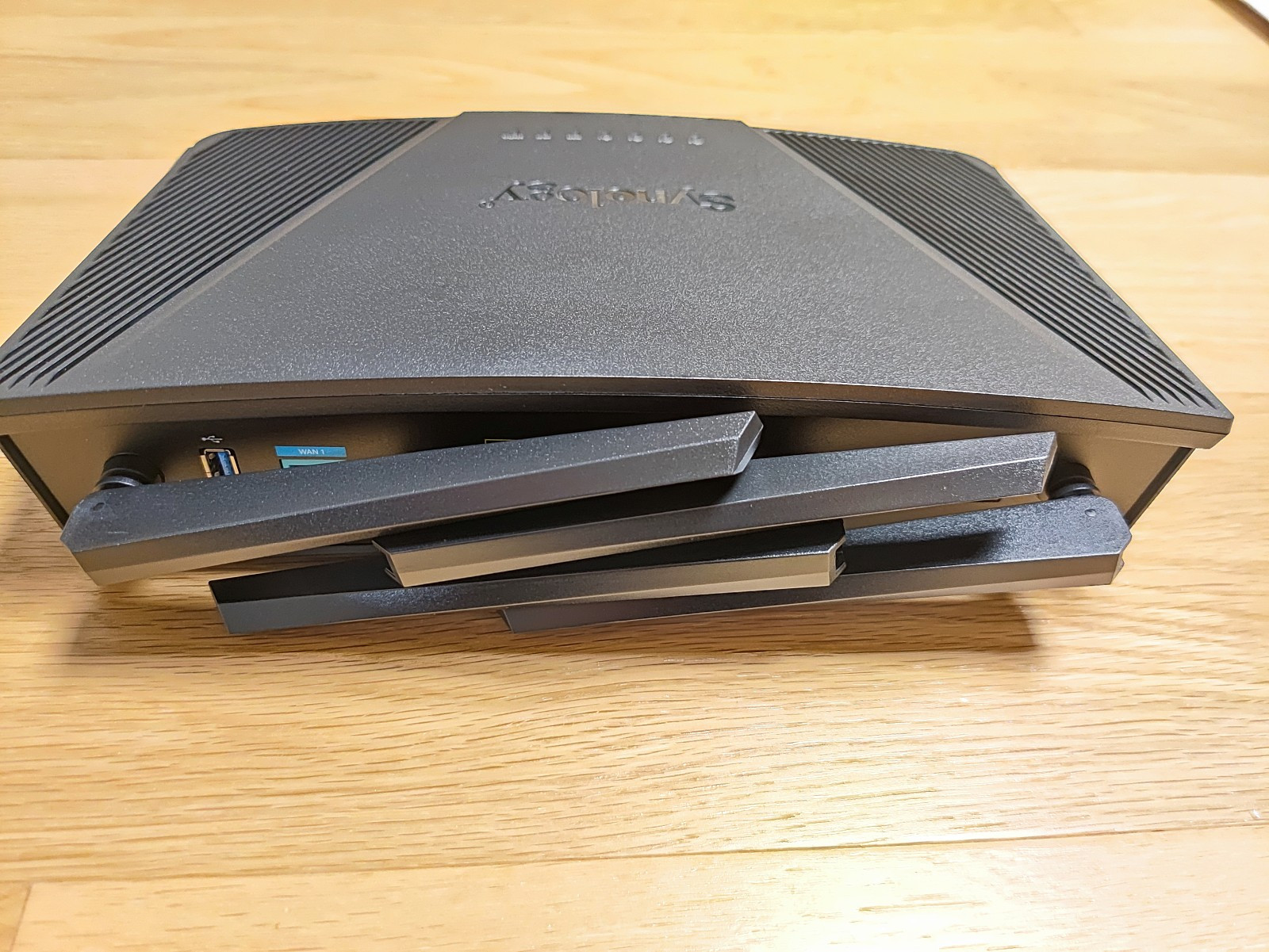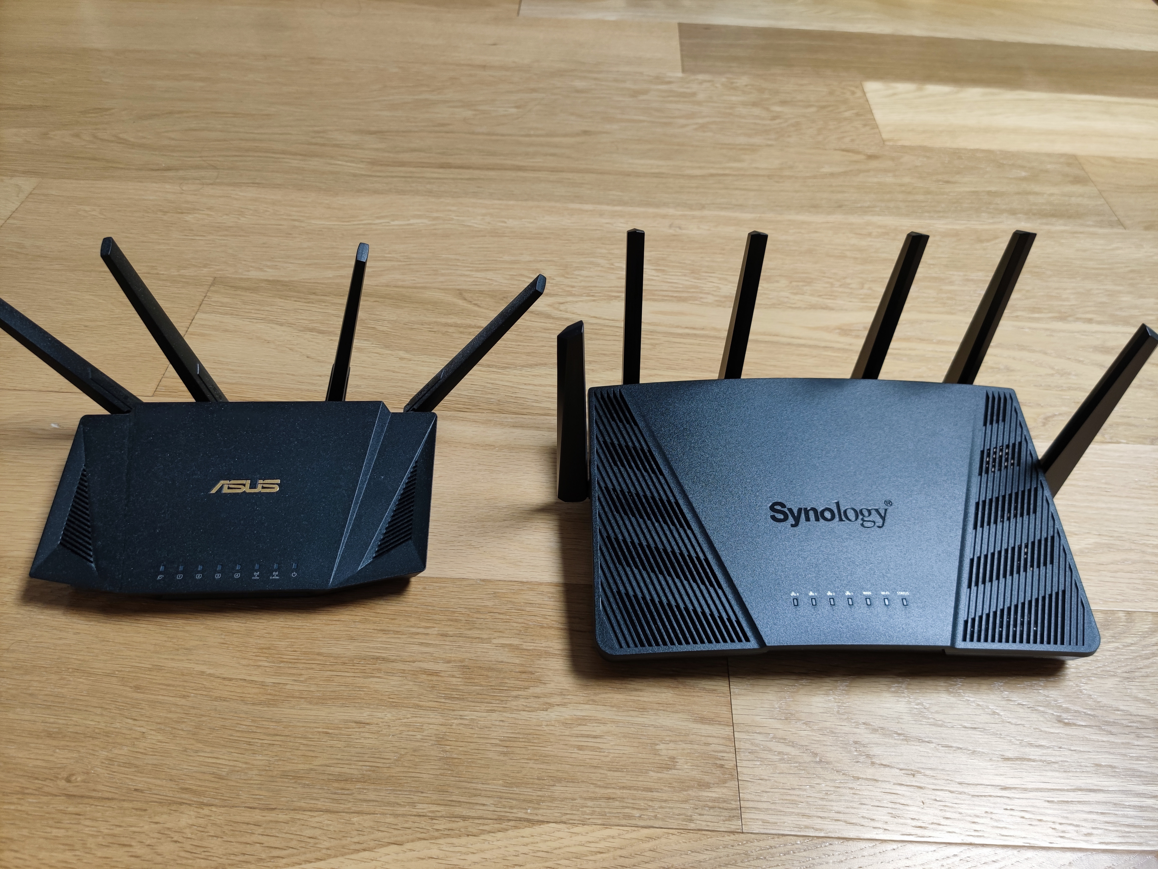 기존에 사용하던 asus ax3000과의 크기 비교입니다. ax3000도 작은편이 아니라고 생각하는데, rt6600ax 옆에 있으니 귀여운 수준이네요.